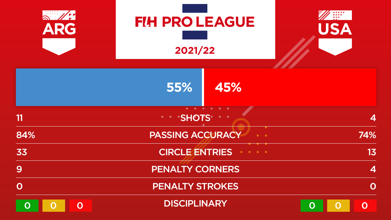 BUENOS AIRES, Argentina – At Cenard in Buenos Aires, there was a Pan American battle between the No. 15 U.S. Women’s National Team and No. 2 Argentina in their first meeting of the 2021-22 FIH Hockey Pro League. USA held the lead at the half, but Las Leonas capitalized on three penalty corners to overcome a strong performance by the red, white and blue, 1-3.