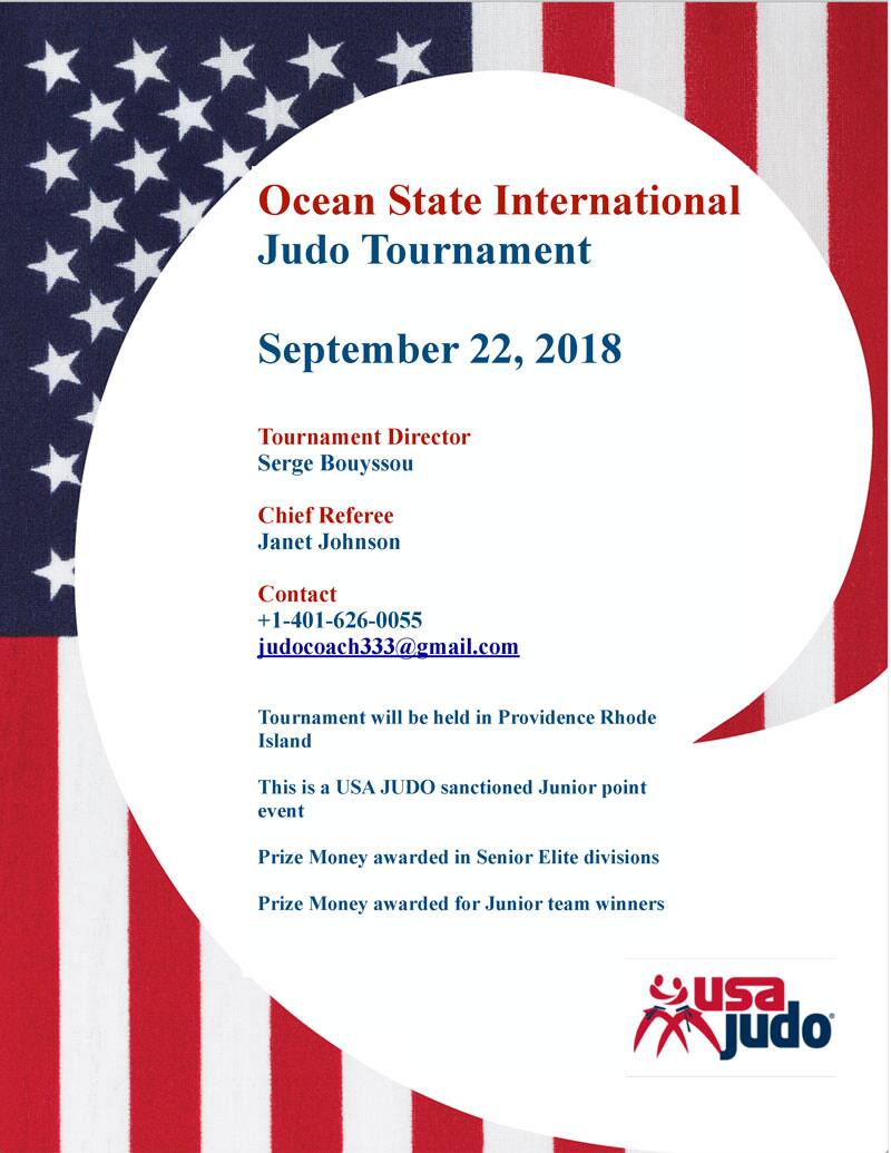 Ocean State International Providence, Rhode Island Sept. 21 - 23, 2018 Share This Page For more information about the Ocean State International please contact: Serge Bouyssou judocoach333@gmail.com 401-626-0055 Website: www.mayoquanchi.com ENTRY PACKET