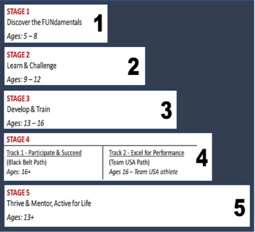 The AJDM pathway to human and Judo excellence is two-fold: age-based and skill-based. The skill-based advancement levels can accommodate entry to the sport at any age. However, the age-based Stage Model represents the core focus of the AJDM framework.