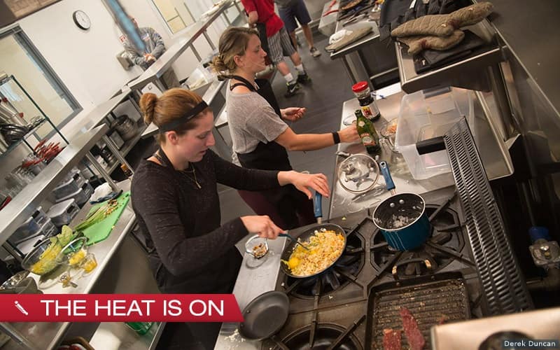 Three teams faced off in the Team USA kitchen for a preliminary round of a winter sports cooking competition.