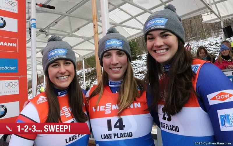 Erin Hamlin notched her first world cup win in Lake Placid, followed by Emily Sweeney and Summer Britcher.