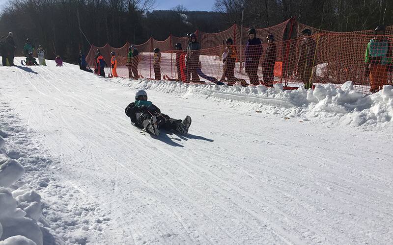 Ride plastic sleds down ski trails in fun races for cool prizes