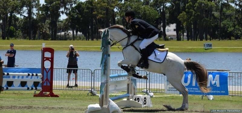 Nathan Schrimsher competes in modern pentathlon at the 2016 UIPM World Cup Final on May 7, 2016 in Sarasota, Fla.