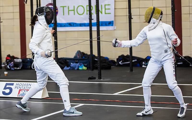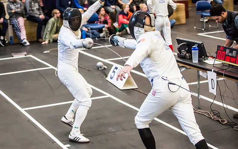 Director of the NSCA, Scott Caulfield tries fencing at the Olympic Training Center!