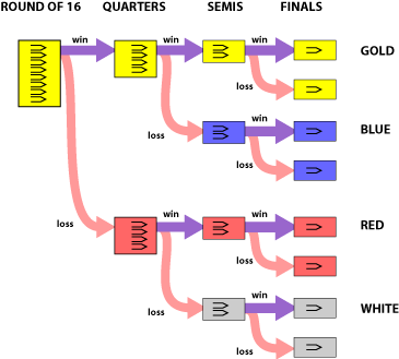 Players will compete for team and individual National Racquetball Championships in Boys, Girls, and Overall Team Competition. Teams will consist of players in 6 singles divisions, 3 doubles divisions for boys, girls, and 3 mixed divisions. Divisions are numbered 1 thru 6 in singles and 1, 2, and 3 in doubles. The top ranked player on a team must enter Division #1, the second ranked player in Division #2, and so on. Division #6 in singles and Division #3 in all doubles events are open to all players not entered in a higher division. No two players from the same school may play in the same division, except Division #6 in singles, and Divisions #3 in all doubles events. If there are fewer than 6 players, boys or girls, on a team, divisions must be filled from the top first, that is Division #1 Singles, then Division #2 Singles, and so on.