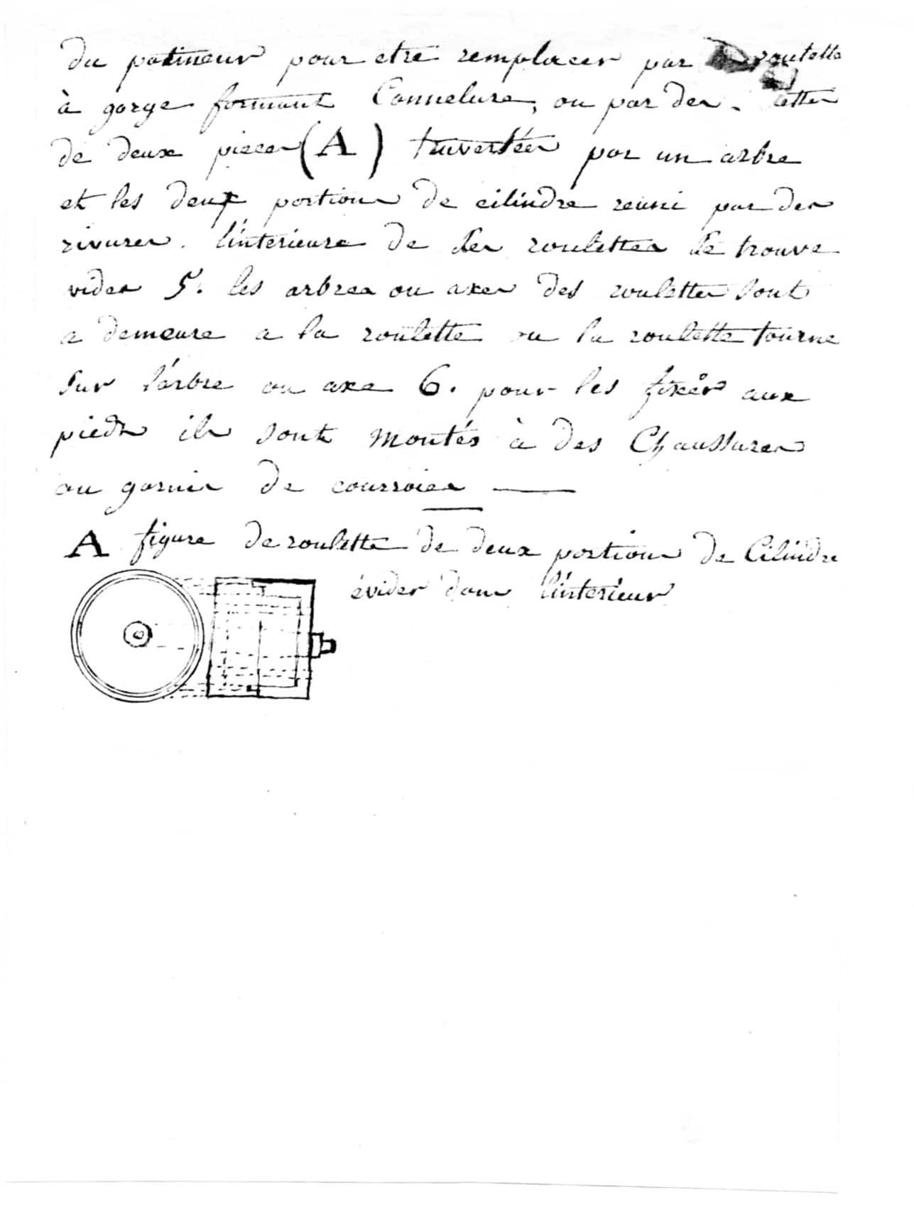 Description of the skates intended to perform in the apartments everything that the skaters can do on the ice with ordinary skates; for which Sieur Petibled residing on rue du faubourg Saint Martin n° 80 requests a Patent.
