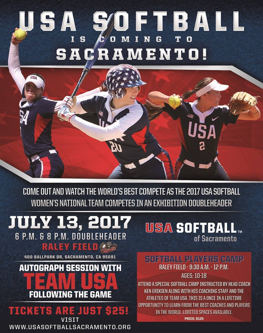 Women's National Team Tour Stop Sacramento, California July 12 - 14, 2017 Share This Page Date Time (PT) Event Info July 12 6:30 p.m. VIP Meet & Greet Tickets July 13 9:30 a.m. Players Camp Tickets 6 p.m. USA 10 - Sacramento All-Stars 0 Box Score 8 p.m. USA 7 - Sacramento All-Stars 0 Box Score