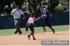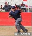 Julian "JD" McGuire from USA Softball of Southern California always keeps his eye on the ball! He makes sure the ball is secure before calling the out. JD still plays ball with a group of friends on a slow pitch team and is a leader and mentor in Orange County umpiring.
