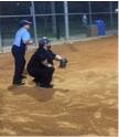 Region 9 | George Gunnfrom, USA Softball of Seattle, watches for runners leaving early at a National Championship. This is George’s fourth year as an umpire and he has quickly progressed in umpiring. He also runs the umpire recruiting and training program. |
