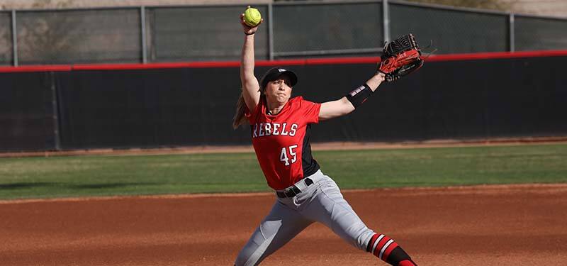 OKLAHOMA CITY — UNLV’s Janine Petmecky (Riverside, Calif.) had herself a weekend at the plate and in the circle as she guided the Rebels to the program’s first series sweep over Fresno State. Following her stellar performances on both sides of the ball, Petmecky has been named the Week 13 USA Softball Collegiate National Player of the Week, USA Softball announced today. The leadoff batter for the Rebels reached base in her first 10 at-bats of the series while going nearly perfect at the plate with an .800 (8-for-10) batting average.