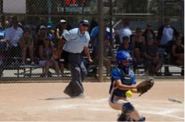 Region 8 I Tom Friesen from USA Softball of South Dakota stops in between games at a girls’ state fast pitch tournament (pictured here). Tom has been a USA Softball umpire for over 30 years after playing fast pitch softball in and around Sioux Falls. He has been teaching in Arizona for 17 years, but returns to South Dakota every summer to umpire and spend time with family. |