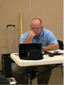 Region 7 I Chuck French, shown here hard at work at the USA Softball Master's Clinic in 2018. French has umpired for 20 years or more with USA Softball of Colorado. He umpires in the RMAC and is one of the UICs for USA Softball of Colorado. He helps develop and train umpires for his Local Association. |
