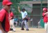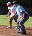 Region 9 I Kerry Steichen from USA Softball of Seattle (Region 9) is ready to move any way necessary as he keeps his eye on the ball. Steichen has umpired for 9 years, and has been successful at four Slow Pitch National Championships while also earning his NIF. |