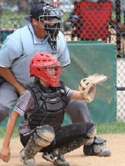 Region 9 I Kyle Leeds, an umpire with USA Softball of Montana, tracking a fly ball. He is a strong supporter of softball throughout the state and is involved in his community through the Elks Club. |