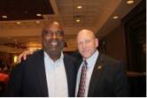 Region 7 I Darren Elliott, Metro Kansas City UIC and Michael Bland, Metro St. Louis Slow Pitch UIC, at the National UIC Clinic Awards Banquet, comparing notes on a possible Host Exchange agreement for 2019. |