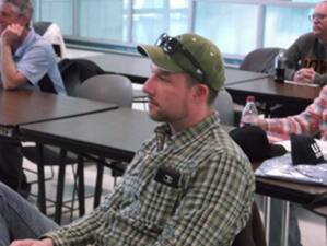 Region 7 I EliKincaid, USA Softball of Iowa, is listening to John Orlowski speak at the USA Softball of Iowa umpire clinic. Eli is from the Quad Cities and is a five-year veteran working on his umpire career. |