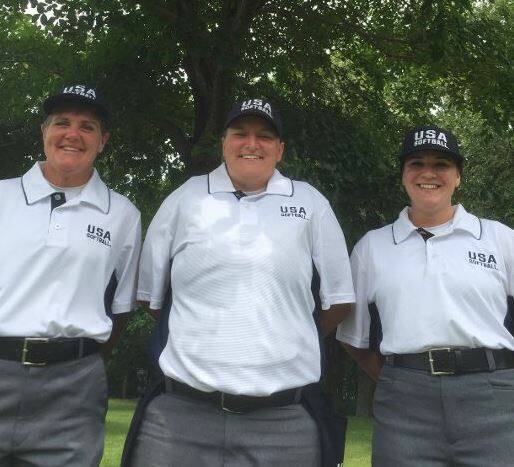 Region 6 | At the 2019 USA Softball 14U A Northern Nationals in Independence Township, Mich., veteran USA Softball of Metro Detroit Umpire, Bobby Allen (center) was selected as the Plate Umpire. USA Softball of Michigan Umpire Hanna Yadon (left) was selected at third base to umpire her first National Championship. USA Softball of Metro Detroit Umpire Katie Haydett (right) was selected at first base. This was Haydett's third National assignment which qualified her for the NIF award. |