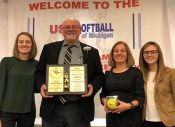 Art Serafinski, USA Softball of Michigan, with his wife Cathy and daughters - Rachel and Kristen. Serafinski passed away April 20, 2020 due to complications from COVID-19. He was a tremendous contributor to the softball program in his state, serving as a District Commissioner for 27 years and on the USA Softball of Michigan Executive Committee for 11 years including a term as President. He also served as a registered umpire for 31 years. Serafinski umpired in three Slow Pitch National Championships, is a member of the National Indicator Fraternity, and was inducted into the USA Softball of Michigan Hall of Fame this past January. He embodied the spirit of our great game and displayed the dedication, commitment, work ethic and heart that it took to be one of the greats of USA Softball in Michigan. He is gone but will always be remembered.