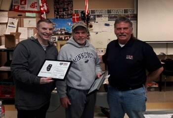 Region 9 | Tom Heaton (Left) and Dean Anderson (Center) receiving their NIF awards from their District UIC Joe Martin (Right). All three are from Everett, Washington. Tom is retired military, works for the FAA and is a statistician for MLB. |