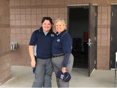 Region 7 | USA Softball of Kansas City umpires Carrie Albers and Kim Shields at the Blue Valley Recreational Fields. Albers and Shields work hard while on the field and are two of the most popular umpires at Blue Valley with the coaches, players and parents. |