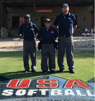 Region 2 | Kim Johnson, far left, USA Softball Ohio, pictured with Linda Hoover of Michigan and Brad Newton of Alabama prior to working the 14-Under Championship Game in this year's JO Cup in Spartanburg, S.C. Kim has been umpiring both FP and SP for well over 20 years and is very active in training and mentoring umpires in his local association, especially in his hometown of Cincinnati. Kim is married to Michelle Fletcher Johnson and of course, they met through softball and umpiring. Kim’s hard work to always improve has led him to the Elite program and certification as a WBSC umpire. |