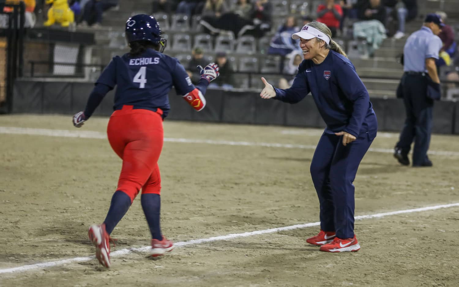 Jocelyn Alo led the U.S. offense with a 3-for-4 day at the plate, including her first home run in the Red, White and Blue