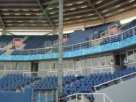 We had our first practice yesterday. We have 2 practice fields next to our stadium. After a good practice we were able to get a tour of our stadium. Now being the bright college student I am, I forgot my video camera on this day. (Sense the sarcasm please) I have no footage of our stadium, but it's really nice. There are 4 locker rooms. 2 for the teams playing and 2 for the teams waiting to play the next game. They all have connections to the dugout, so it's really not a hassle getting around there at all. The seating in our stadium is nice as well. Not a bad seat in the house, with the exception of if you are in the sun, but then the sun is the only bad part!