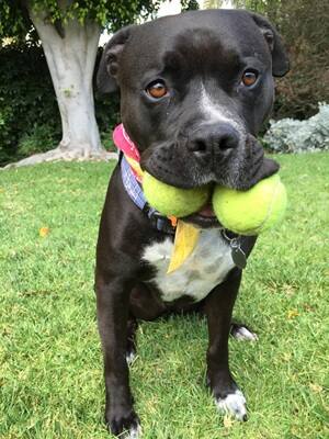 My guy Walter. He tries to fit as many tennis balls in his mouth as he can.