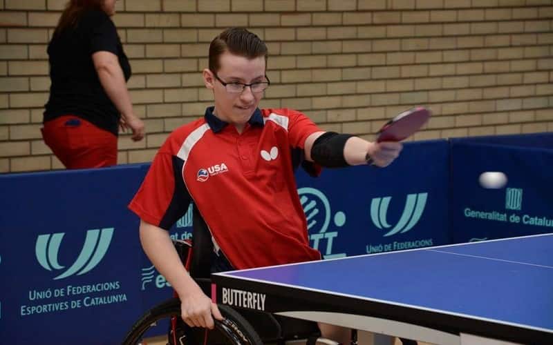 Personal: I am a class 3 wheelchair athlete who has a spinal cord injury that happened at birth. I tried numerous sports such as sled hockey, wheelchair tennis, and wheelchair basketball, until I discovered table tennis, and that became my focus. My goal is to represent the USA at the Paralympics.
