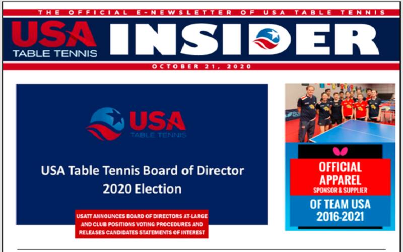 USA TABLE TENNIS ANNOUNCES BOARD OF DIRECTORS AT-LARGE AND CLUB POSITIONS VOTING PROCEDURES AND RELEASES CANDIDATES STATEMENTS OF INTEREST