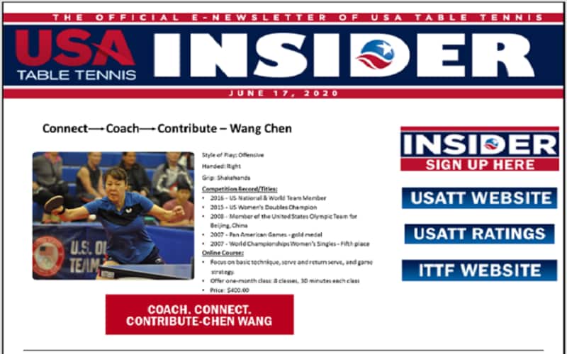 Sign-up for the latest Table Tennis articles and stories delivered weekly to your inbox courtesy of USATT.