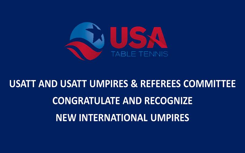 USATT and USATT Umpires & Referees Committee Congratulate and Recognize New International Umpires