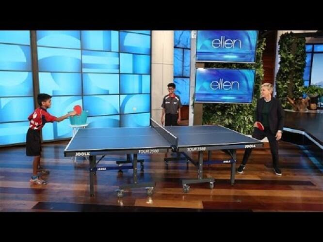 Brothers Sid and Nandan are top-ranked table tennis players who joined Ellen for the first time, showing her a few new techniques along the way!