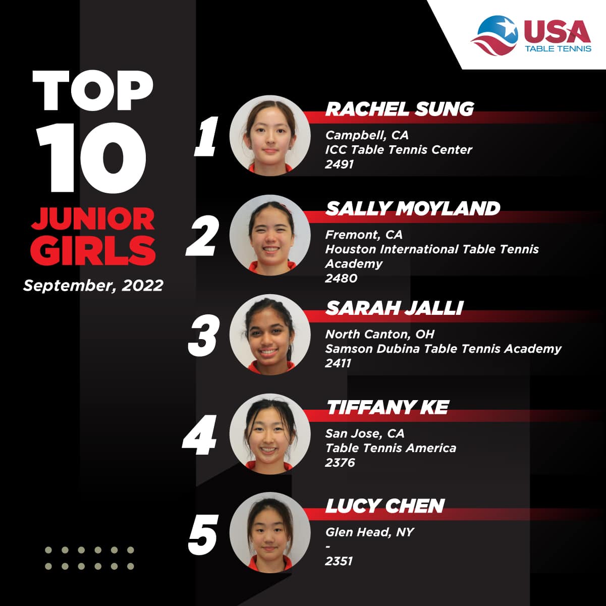 USATT Top 10 Rating Lists