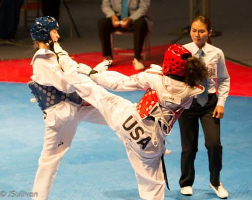 Proudest Moment in Taekwondo: Walking out onto the mat at the 2014 Junior World Championships with her coach, Master Cha, and looking up into the stands and seeing the rest of the USA team cheering and waving the American flag.