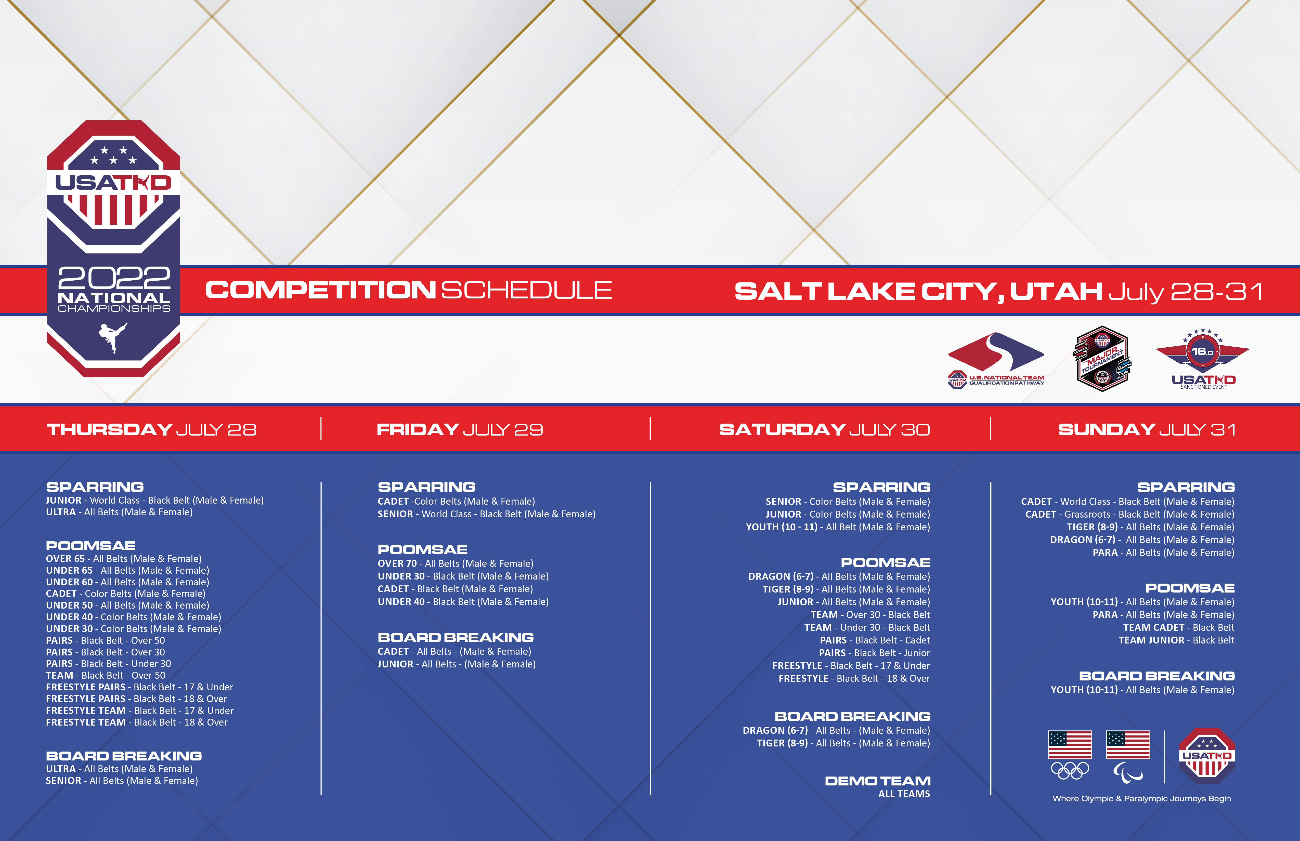 Weigh-in/check-in begins July 27. Competition begins July 28.