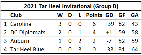 - Men (Group B): Carolina, DC Diplomats, Auburn, Tar Heel Blue
