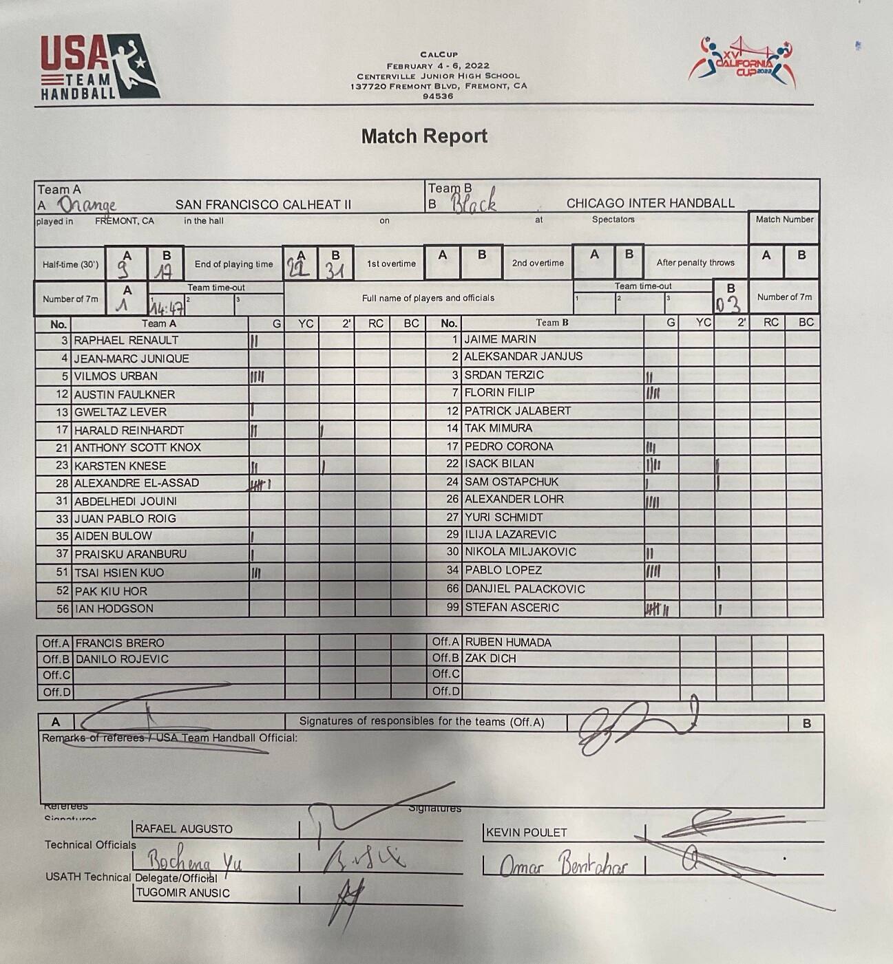 - Group B: SF Cal Heat, Chicago Inter, NYC THC, Air Force