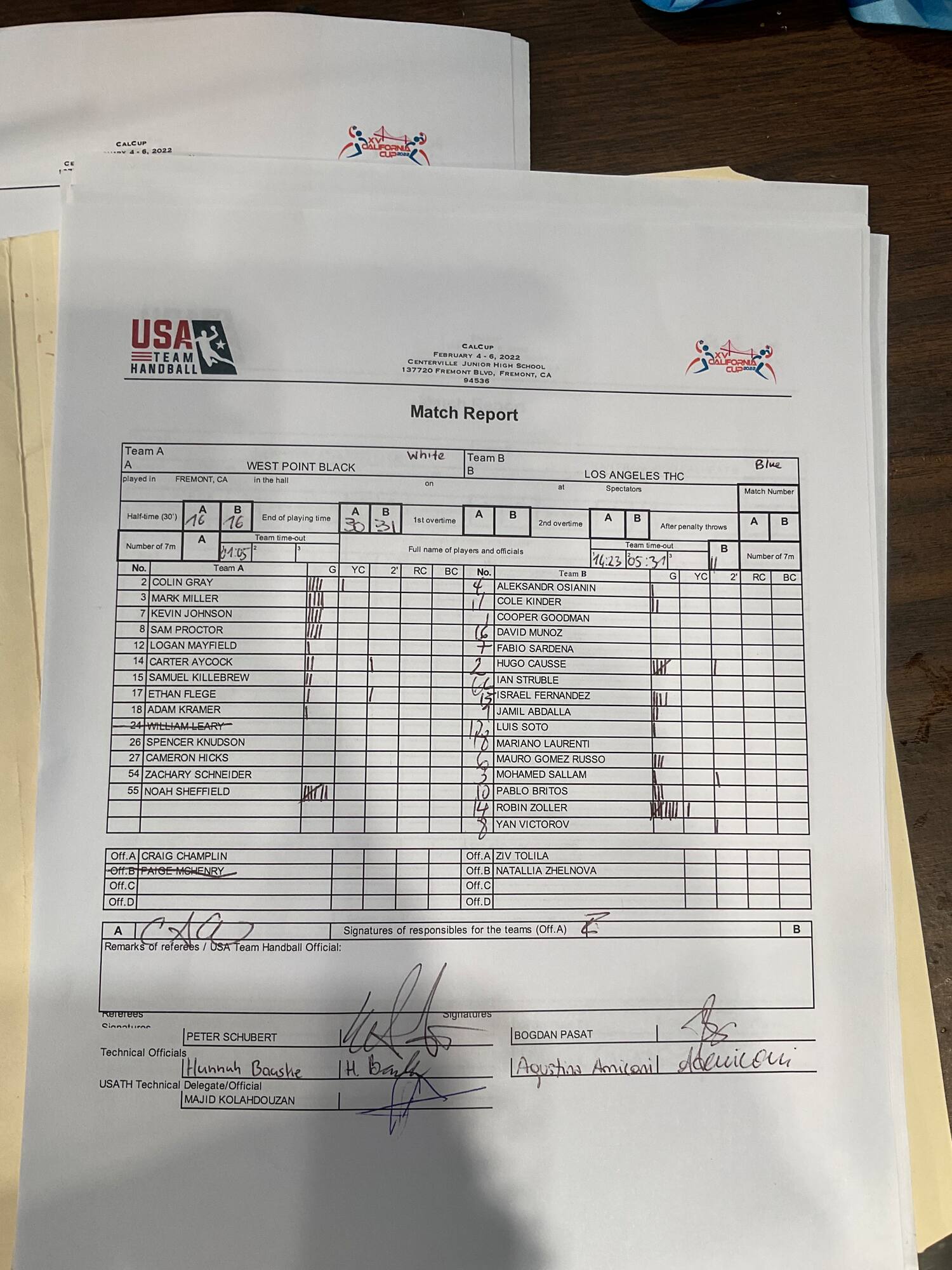 - Group A: NYAC, Army (West Point) Los Angeles THC, SF CalHeat II