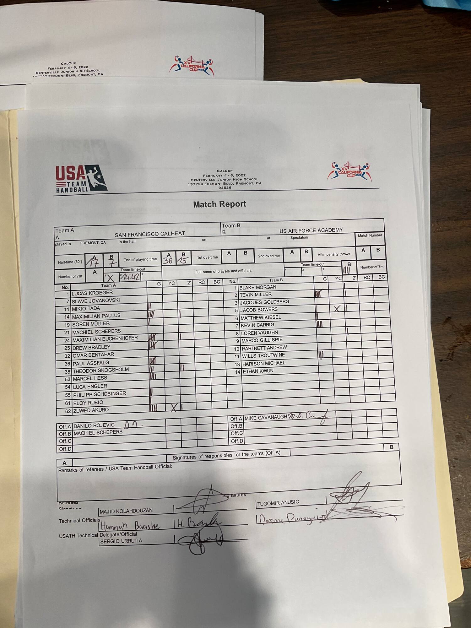 - 6:30 PM CalHeat vs Air Force 36-15 (18-7) Video Match Report