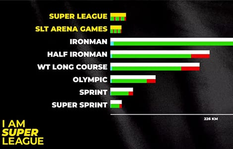 Triathlons distances range from sprint triathlons, olympic distance triathlons, half-ironman triathlons, ironman triathlons, and ultra triathlons