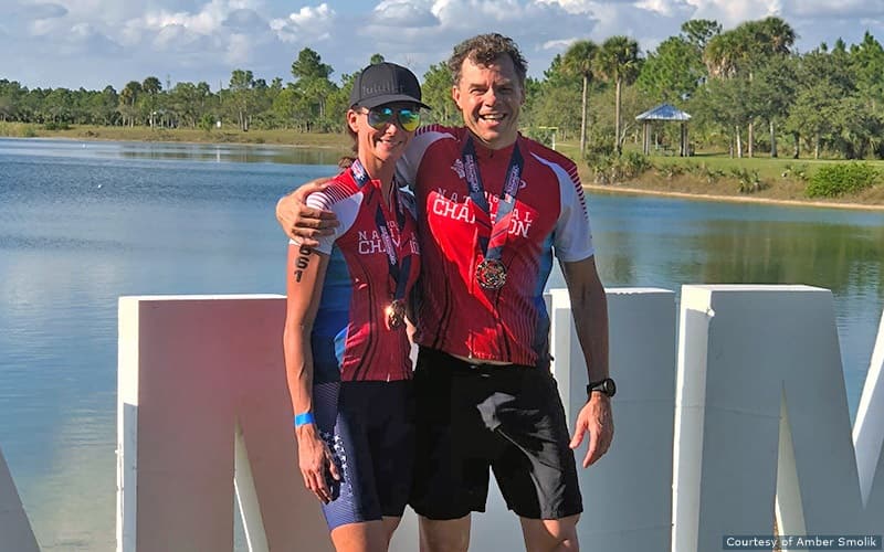 Overall USA Triathlon Long Course Aquabike National Champions Amber Smolik (R) and Blair Saunders (R).