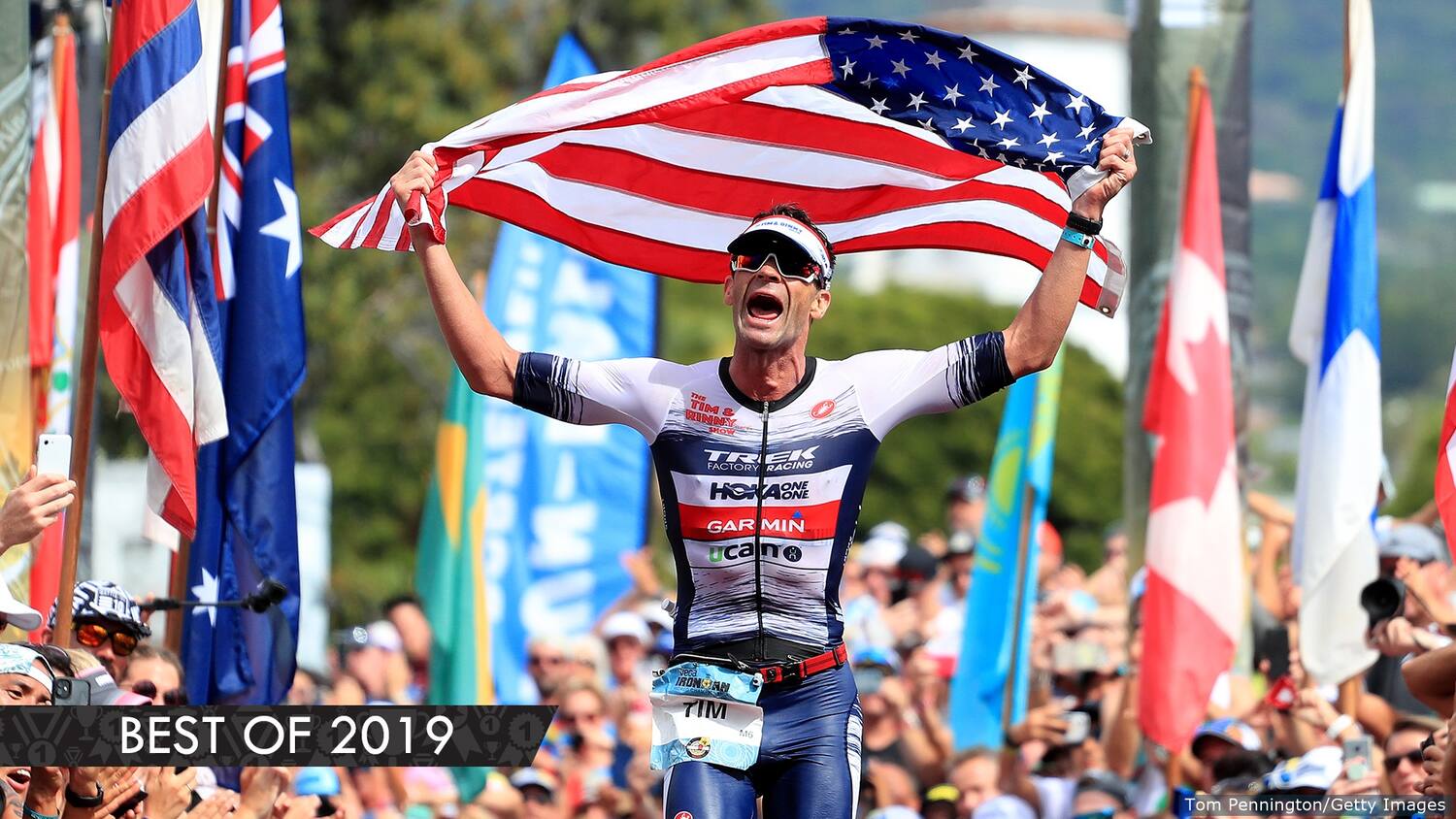 In what will surely be an iconic photo for years to come, the image of Tim O’Donnell crossing the finish line in second place with the American flag over his head encapsulates all the incredible emotion of the IRONMAN World Championship. The video following, taken from the ground in Kona, captures the roar of the crowd as the U.S. IRONMAN legend completes the grueling course in under eight hours. It’s a moment we won’t forget anytime soon.