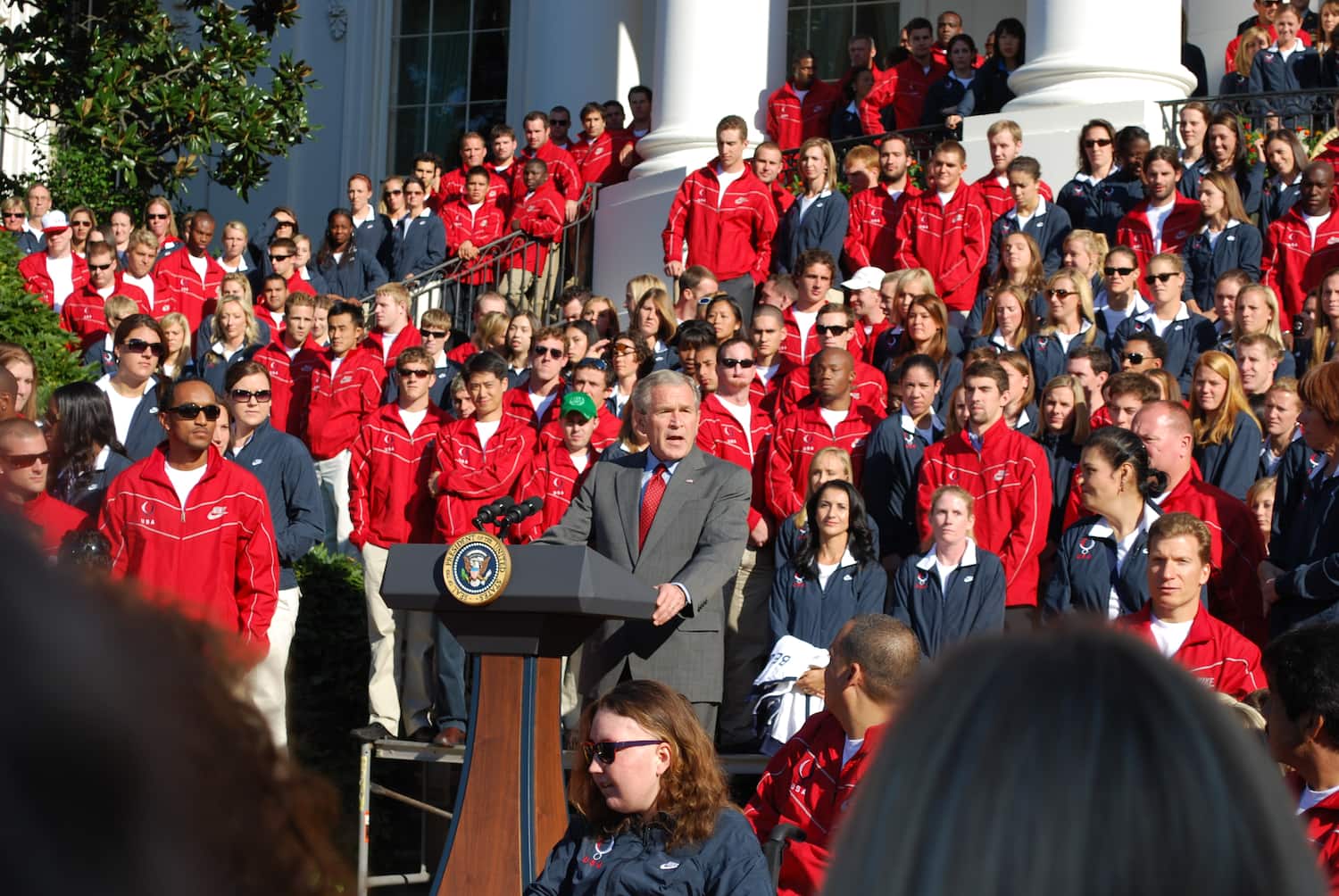 Four triathletes from the U.S. Olympic Team joined more than 500 athletes from the 2008 Beijing Olympic and Paralympic Games at the White House to be honored by President George W. Bush and First Lady Laura Bush.