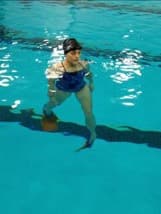 10. Torpedo kick off the wall: This is similar to the underwater push off the wall (drill No. 4). However, this drill is performed on the surface of the water. Push off from the wall with your arms outstretched and hands together and your face in the water. Kick vigorously until you need to take a breath. Stop and swim slowly back to the wall. The focus should be on pointing your toes — and pointing them slightly inward so that the big toes almost brush together — and on kicking from the hip. Keep your knees relaxed (but not bent) and drive from the hip. You should feel your gluteus (bottom) muscles being engaged.