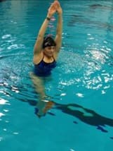 2. Vertical Kicking: From a vertical position in the deep end of the pool and your arms at your sides, use a flutter kick to keep your head above the water. Aim to keep the legs straight and toes pointed. As you get stronger you can start to add a 90-degree rotation to each side with a pause in the center. Aim to initiate the rotation from the hips and legs and not the upper body with a goal to rotate the body as one unit. For a more advanced version, try to raise your arms for 10 second intervals.