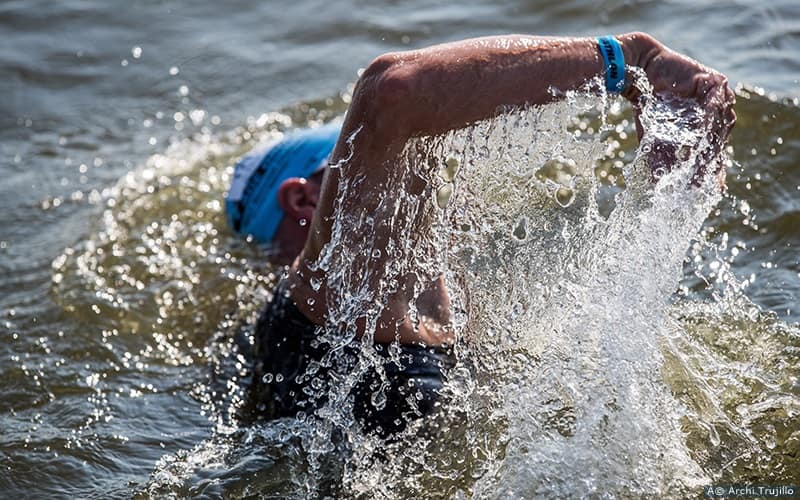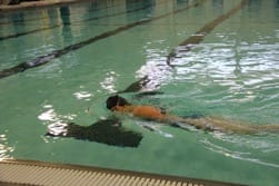 Holding the breath when the face is submerged creates additional buoyancy. While this may seem like a good thing, the problem is the increased buoyancy happens in the top half of the body. The resultant effect is it causes the legs to sink. When the face is in the water you should be continuously exhaling through your mouth, nose or combination of both — whichever is most comfortable for you. This will also help to ensure that the lungs are ready to receive a full inhalation of breath.