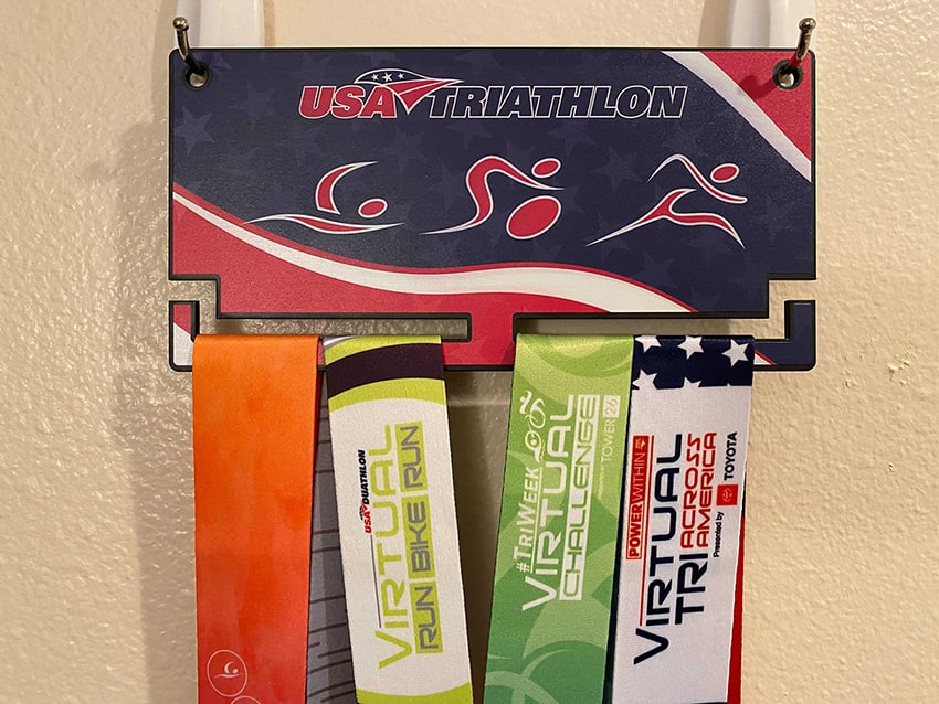 · $55 – an exclusive finisher medal, USA Triathlon-branded metal medal hanger and a donation to the USA Triathlon Foundation to help open pathways for all to swim, bike and run
