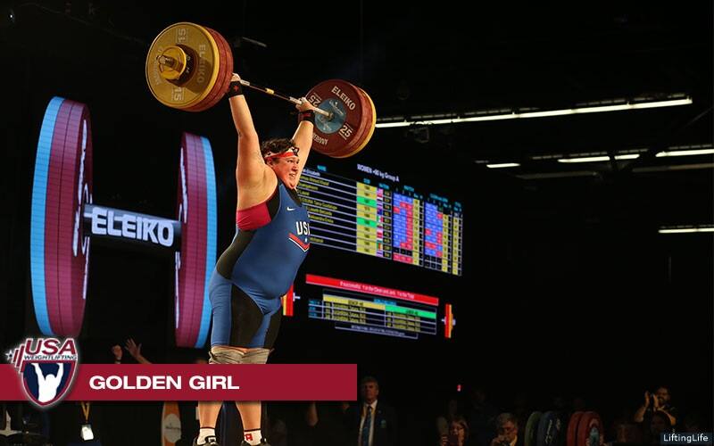 Caitlin Hogan as the first member of Team USA to break a record. Her 111kg Clean and Jerk is a new Senior American record.
