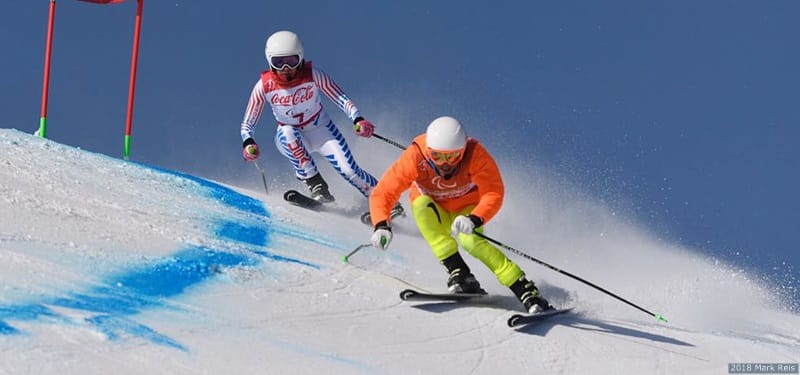 Danelle (left) and Rob (right) Umstead compete at the PyeongChang 2018 Winter Paralympic Games.
